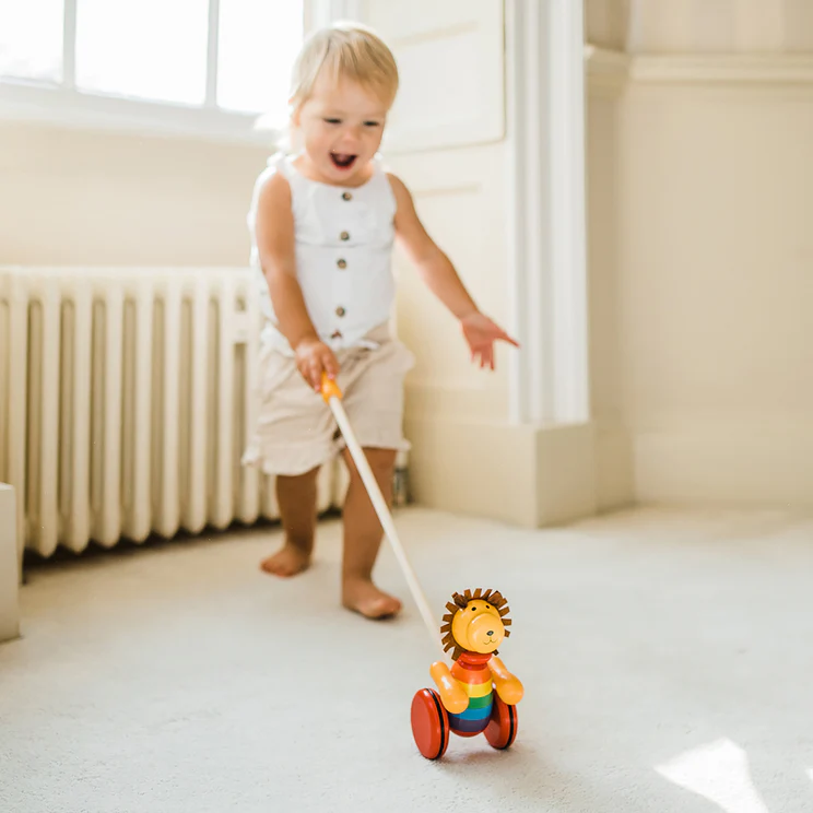 This lovely wooden lion push along is the perfect traditional toy for toddlers, encouraging them as they make those first steps.