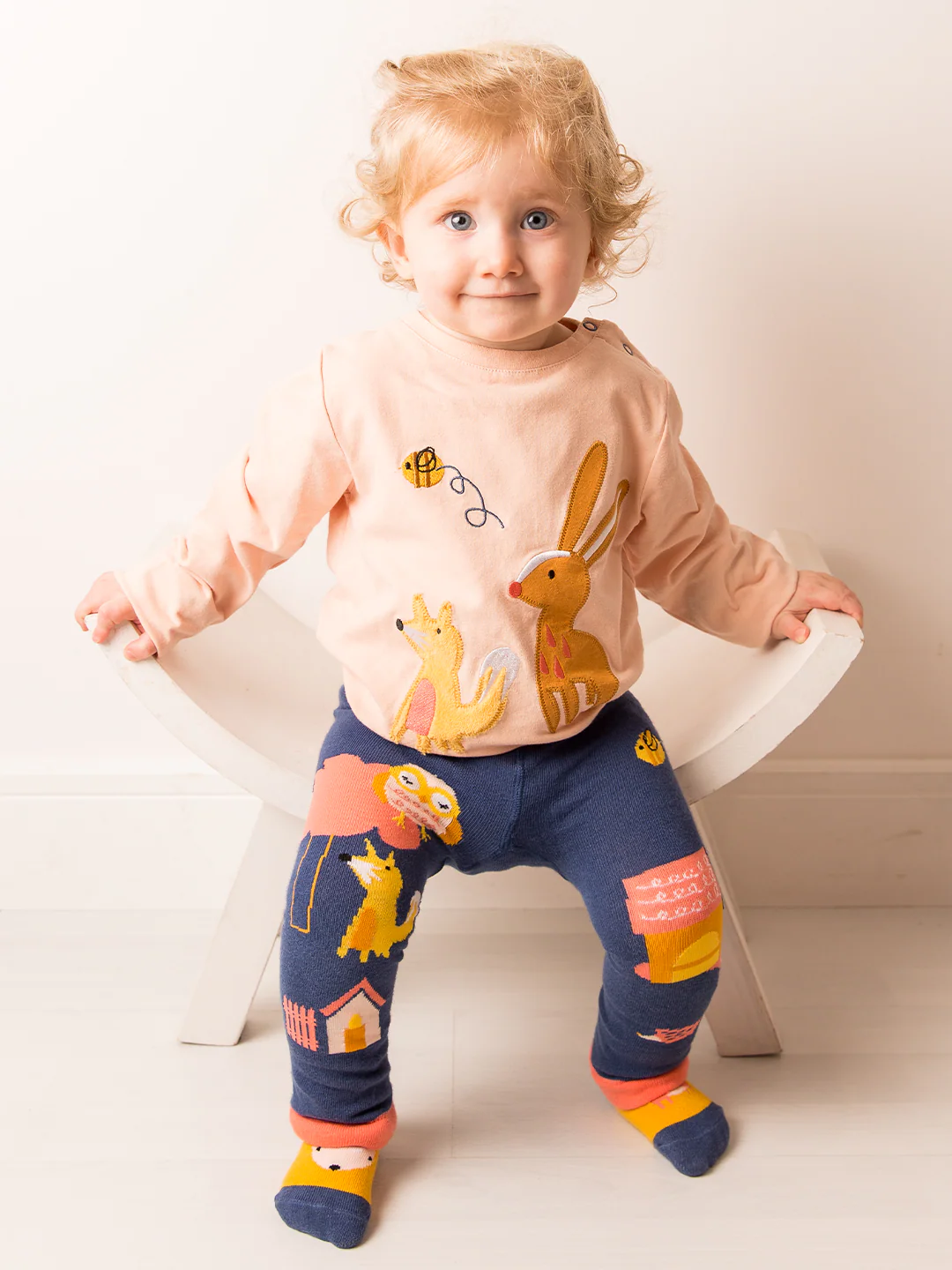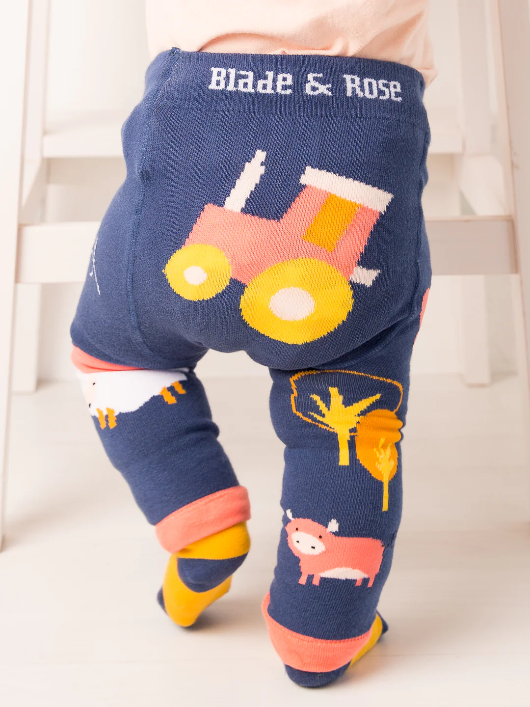 In a navy and coral-pink colourway featuring farmyard & meadow animal images, these leggings are both playful and stylish. A tractor on the bottom finishes this design off in our new range. Perfect for visits to a farm, adventures in the countryside or playing with friends at home or out and about.